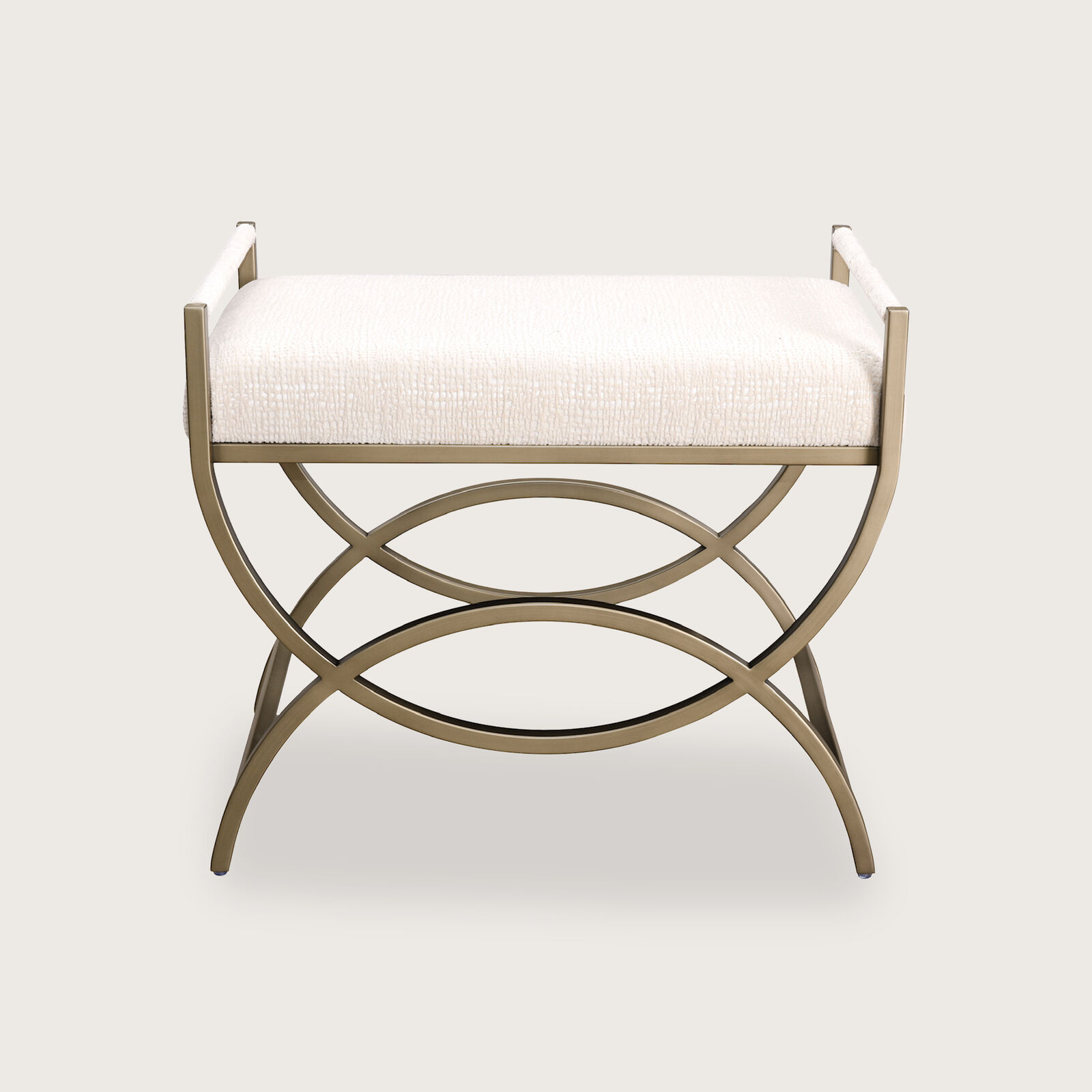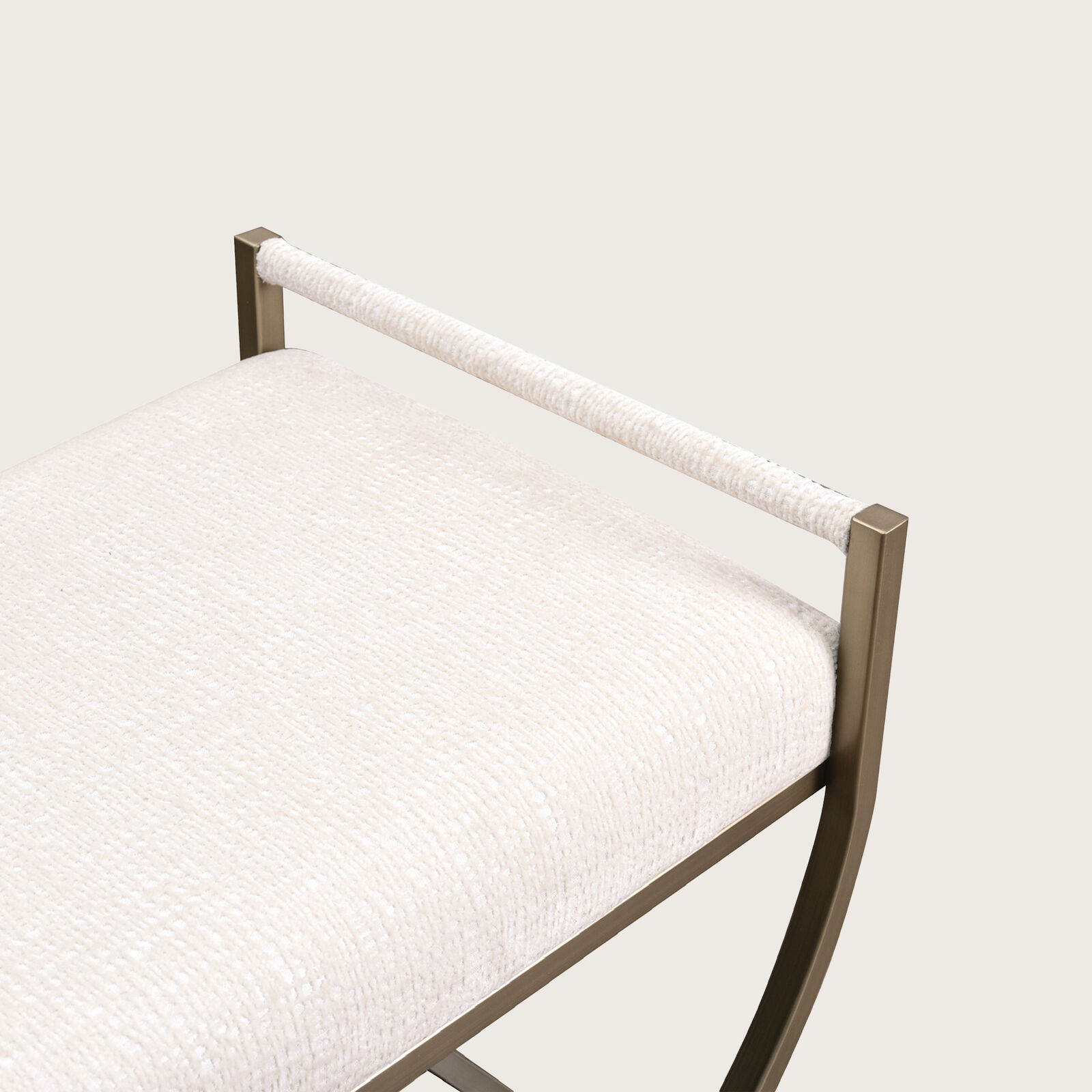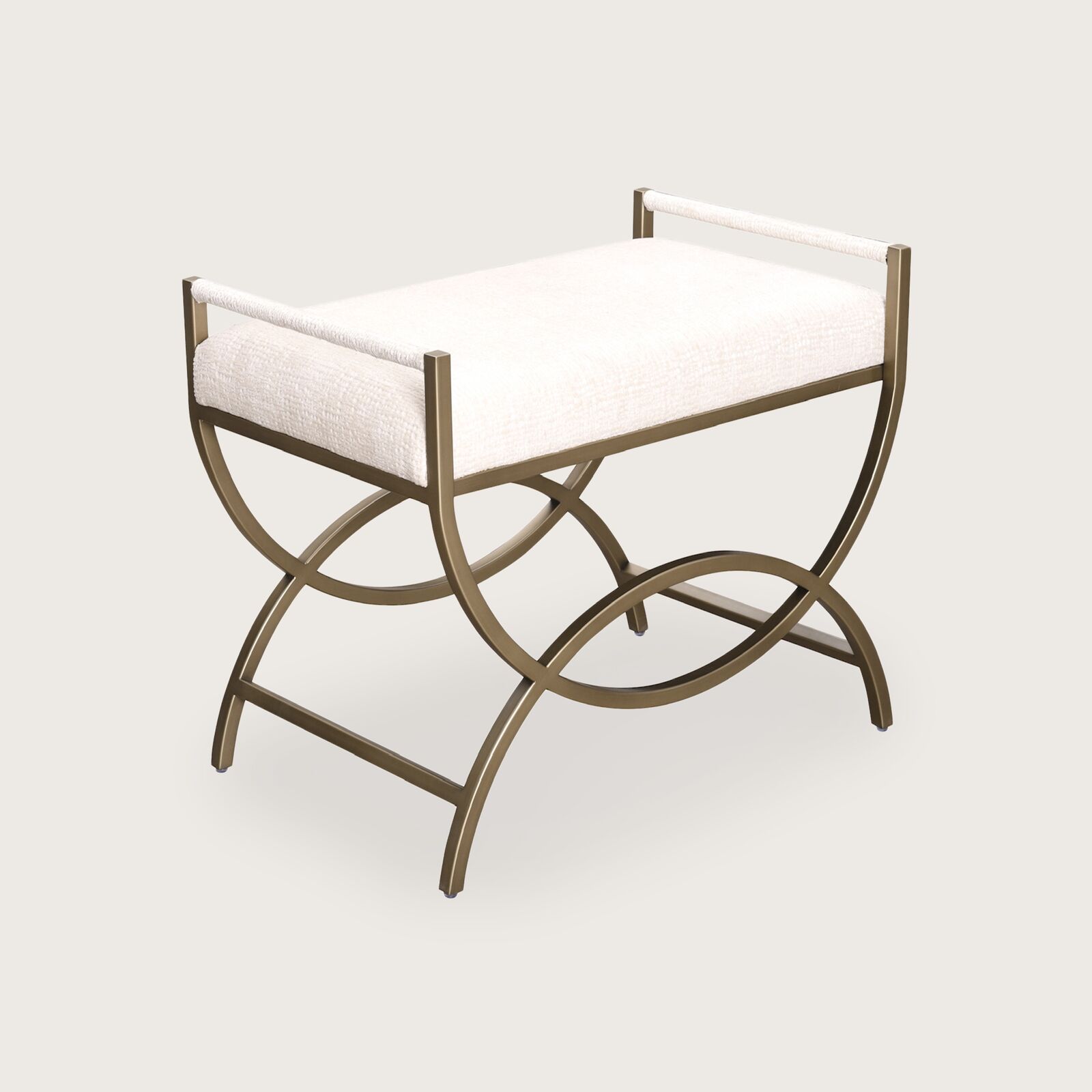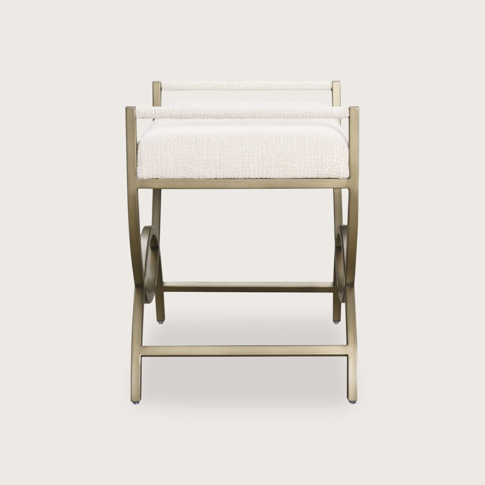 Elevate your space with the Bloom Stool, where elegance meets comfort. Featuring a beautifully curved brass base and upholstered in a luxurious cream patterned velvet, it combines style and comfort effortlessly. Ideal for contemporary interiors this versatile piece enhances powder room and bedroom areas.