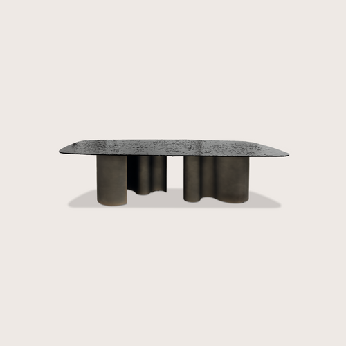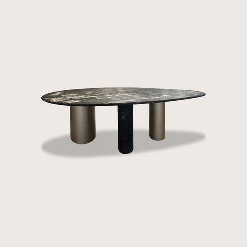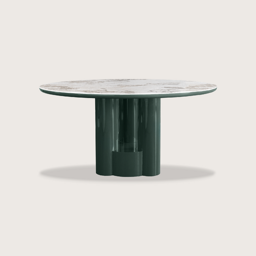 A striking dining table crafted entirely from richly veined marble, featuring a sculptural pedestal base. Its bold presence and luxurious finish bring timeless elegance to any space.