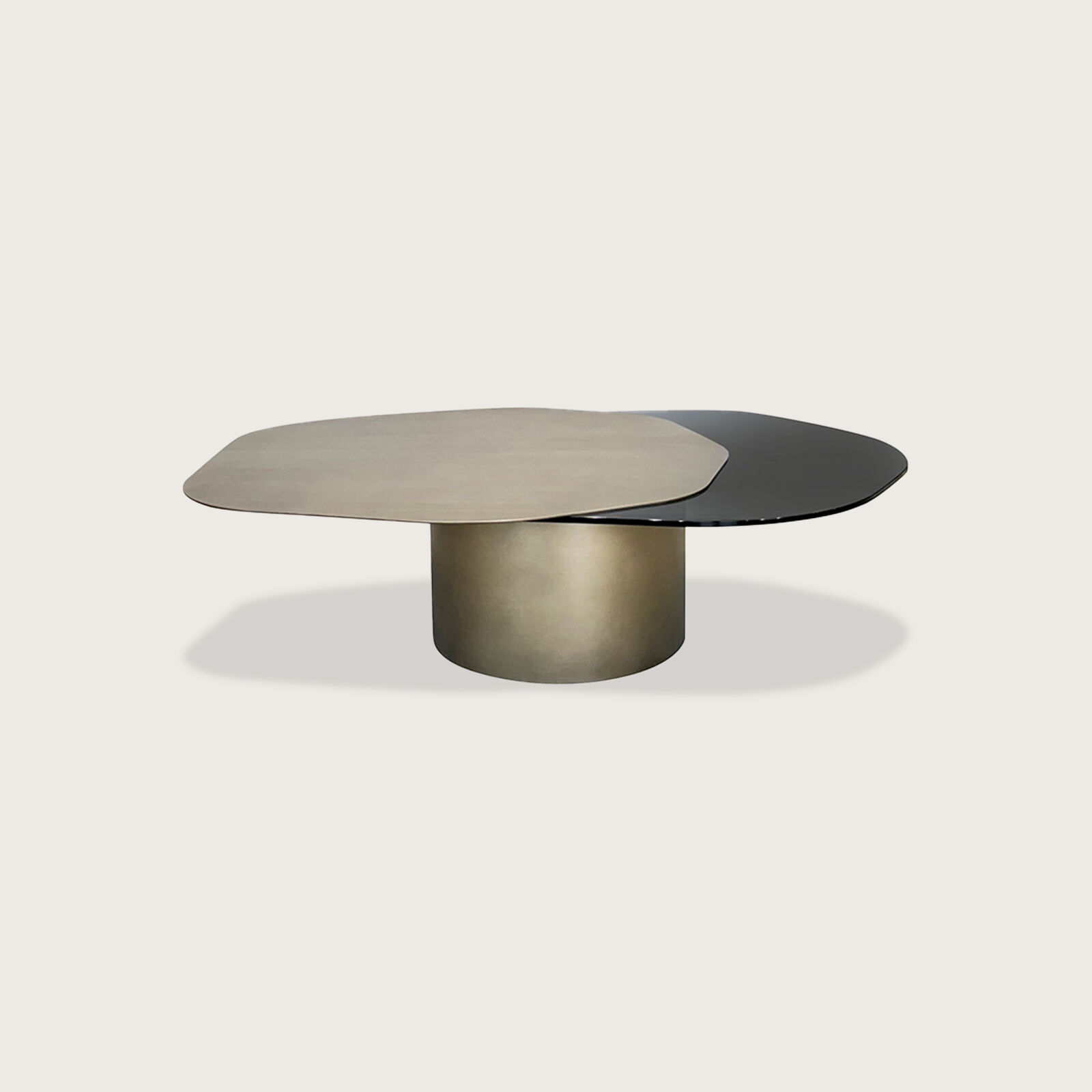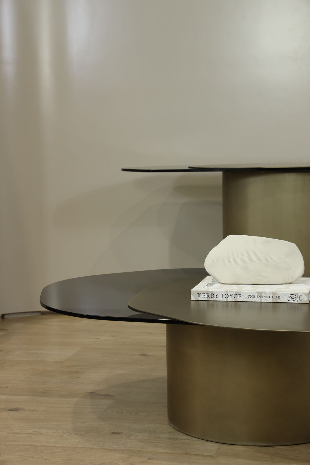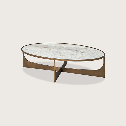 Enhance your living space with the Carine Coffee Table, a stunning piece featuring a harmonious blend of brass and stained glass. The elegant brass frame provides a luxurious touch, while the intricately designed stained glass top adds a splash of artistry, making it the perfect centerpiece for any sophisticated setting.
