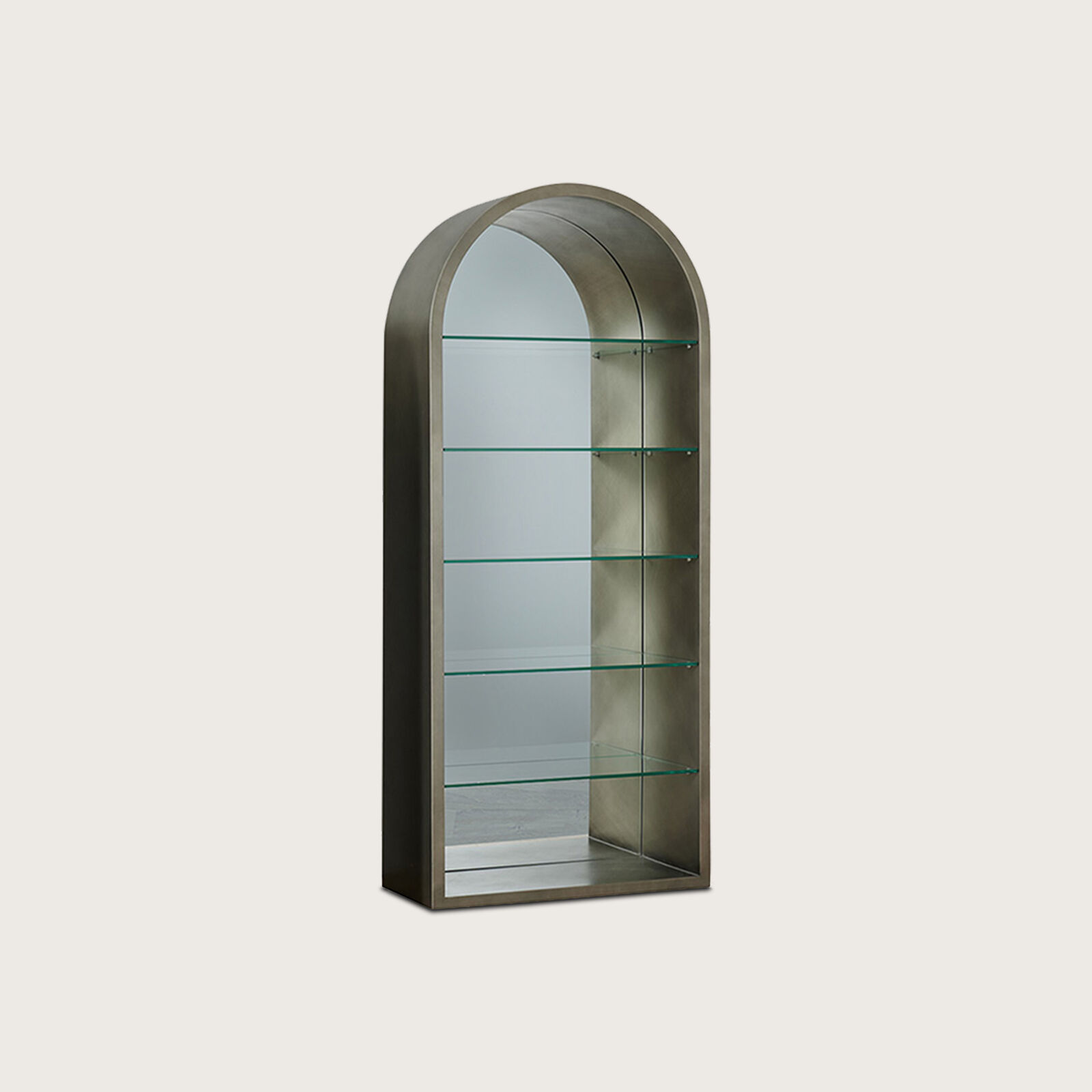 Discover the Dune Mirror, where sophisticated design harmoniously integrates with practical functionality. Featuring a stunning brass frame and a mirrored back, it provides elegant storage solutions with a touch of modern refinement.