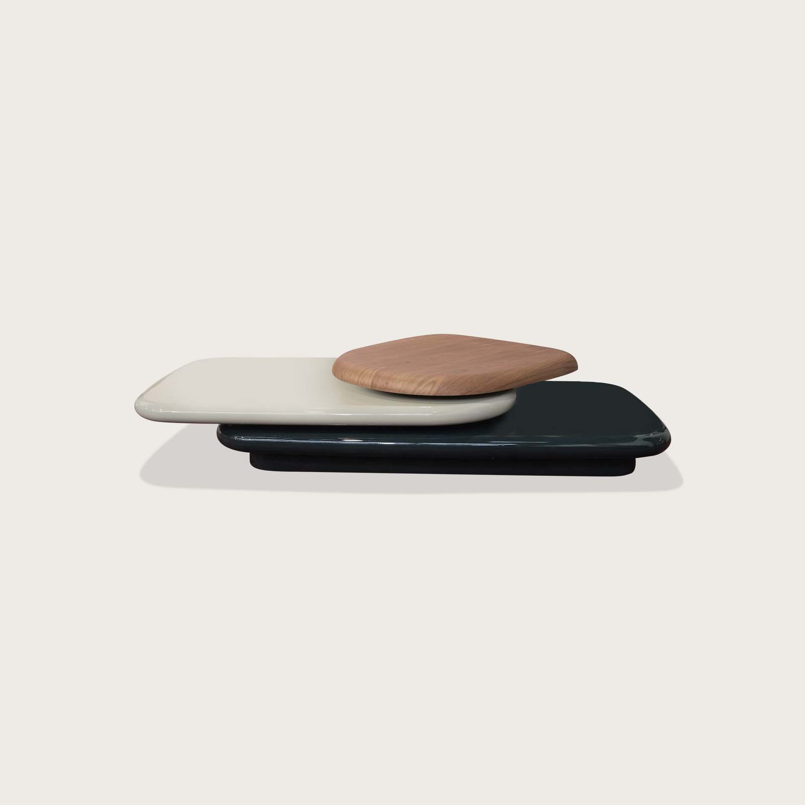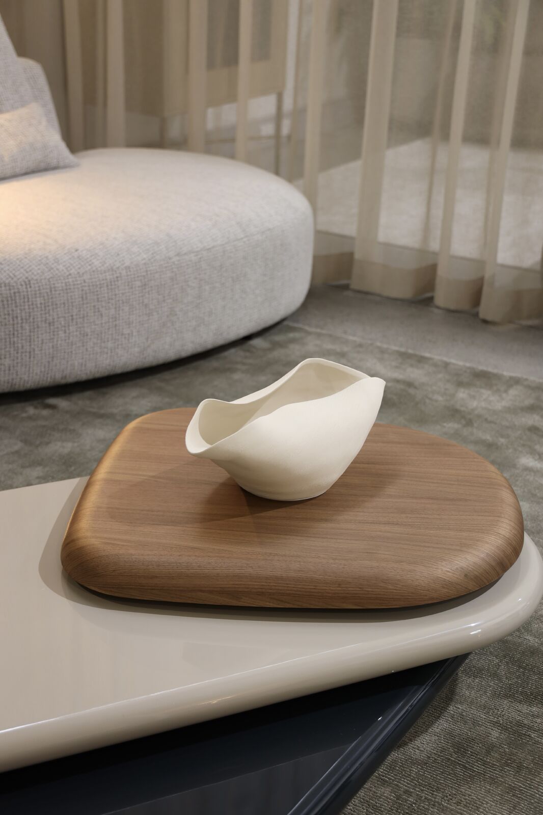 Thoughtfully designed for modern living, the Lys Coffe Table balances style and function. With its unique three-tiered structure — featuring two swivel tiers — it offers customisable layouts to suit any space. Crafted from a sleek mix of timber and polyurethane, Lys pairs warm beige with bold dark blue for a sculptural, contemporary look. Perfect for displaying, serving, or simply making a statement.