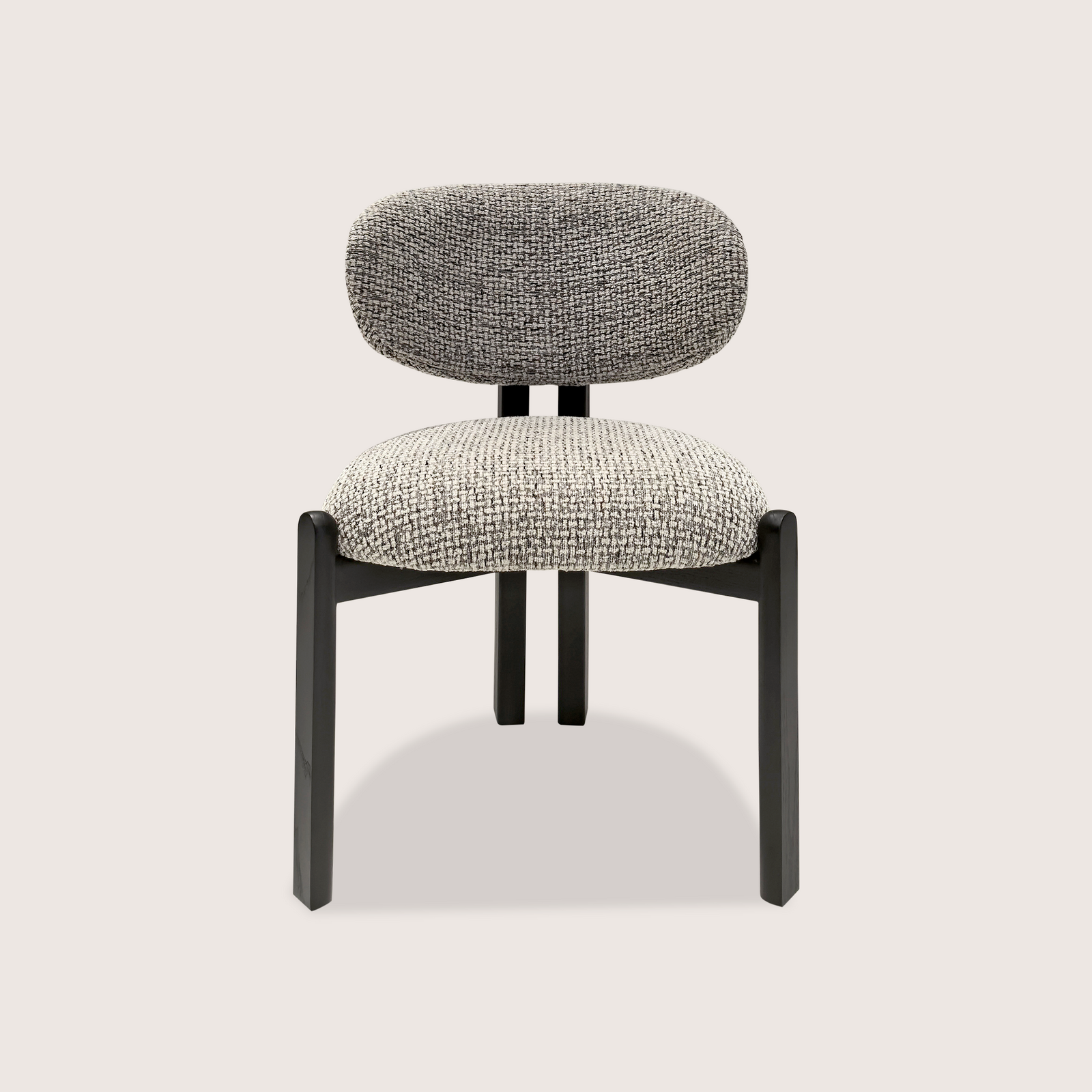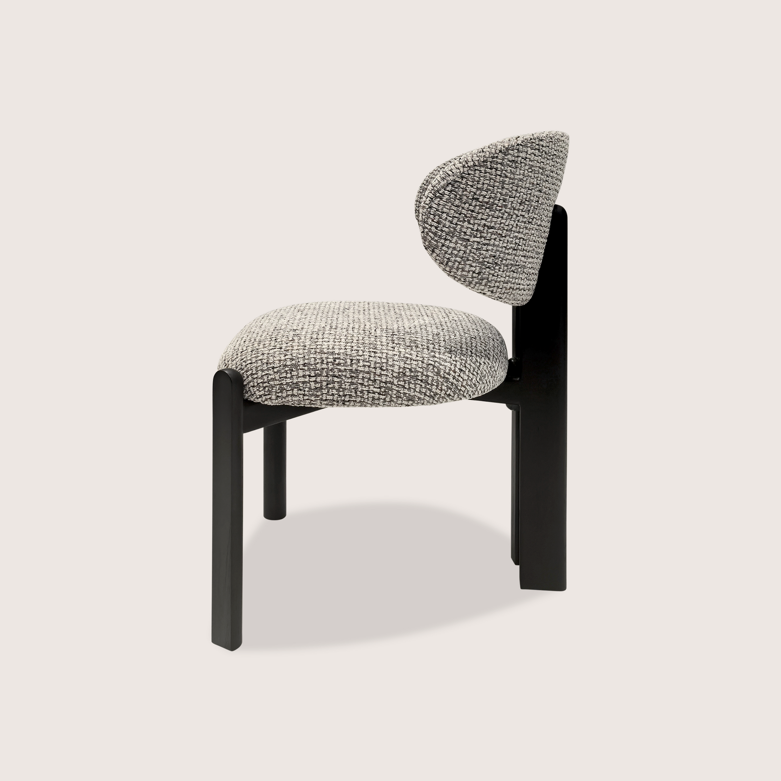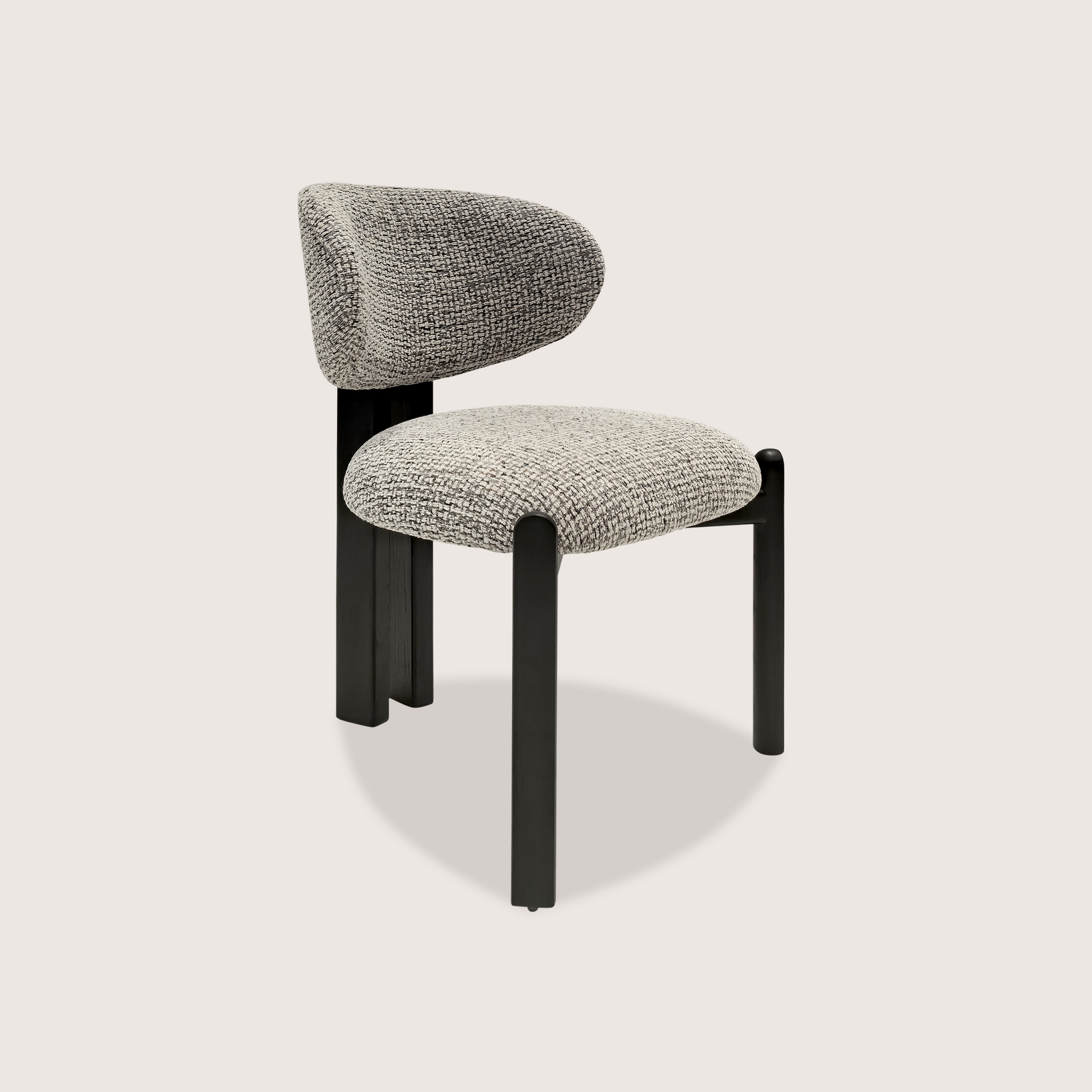 Sculptural and refined, the Matisse Dining Chair is a standout piece that fuses minimalist form with rich texture. Its curved backrest and generously cushioned seat are upholstered in a multi-tonal, textured fabric that offers both visual depth and comfort. The unique rounded frame is finished in a dark timber veneer, adding a grounded elegance. A versatile choice that pairs effortlessly with a variety of interiors, from modern spaces to more classic or eclectic settings.