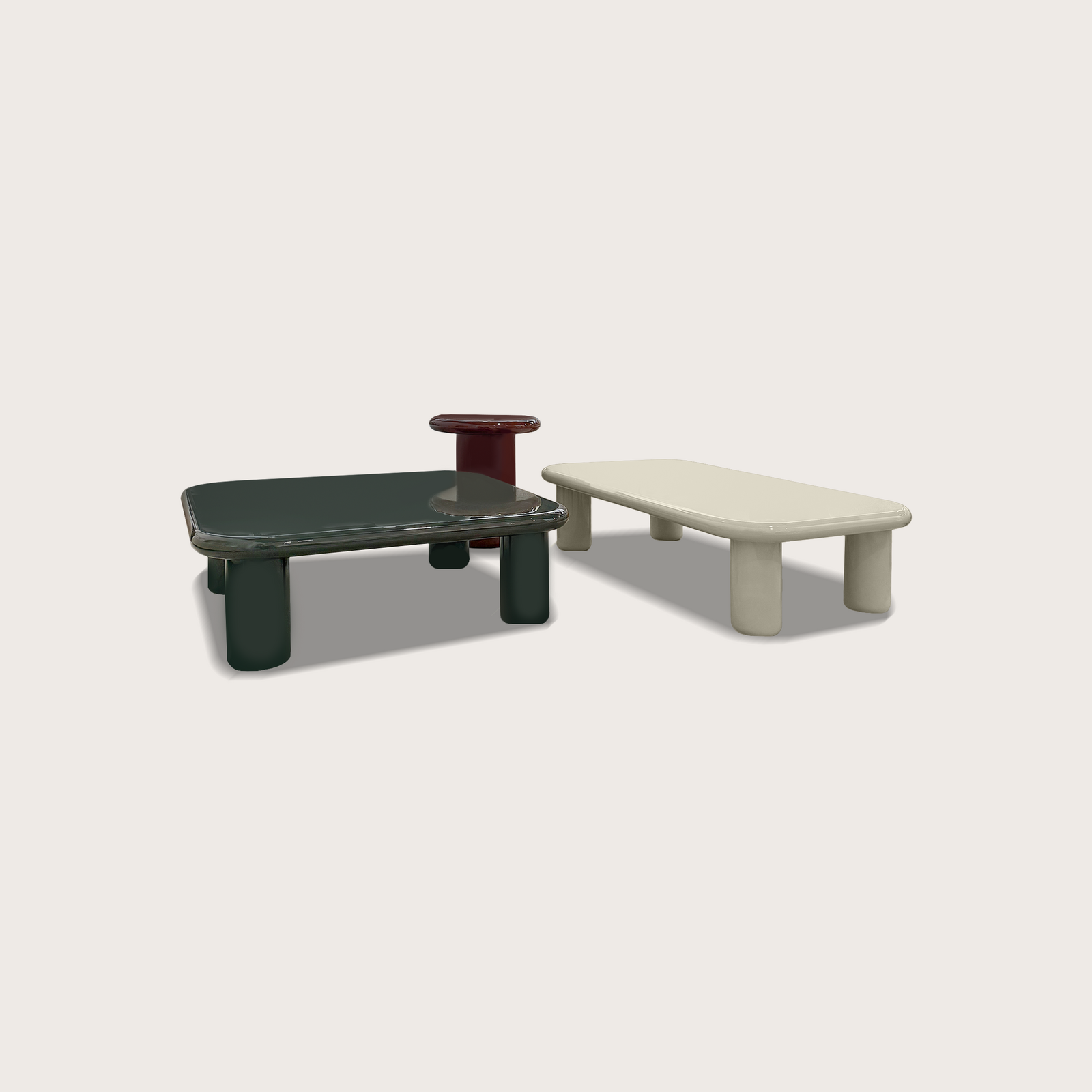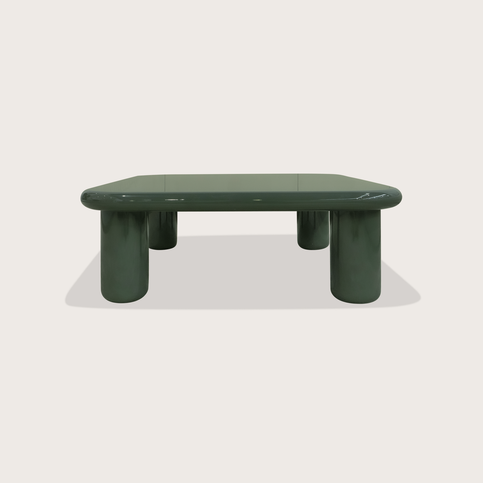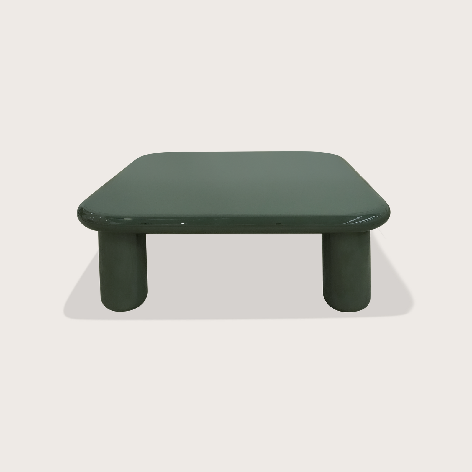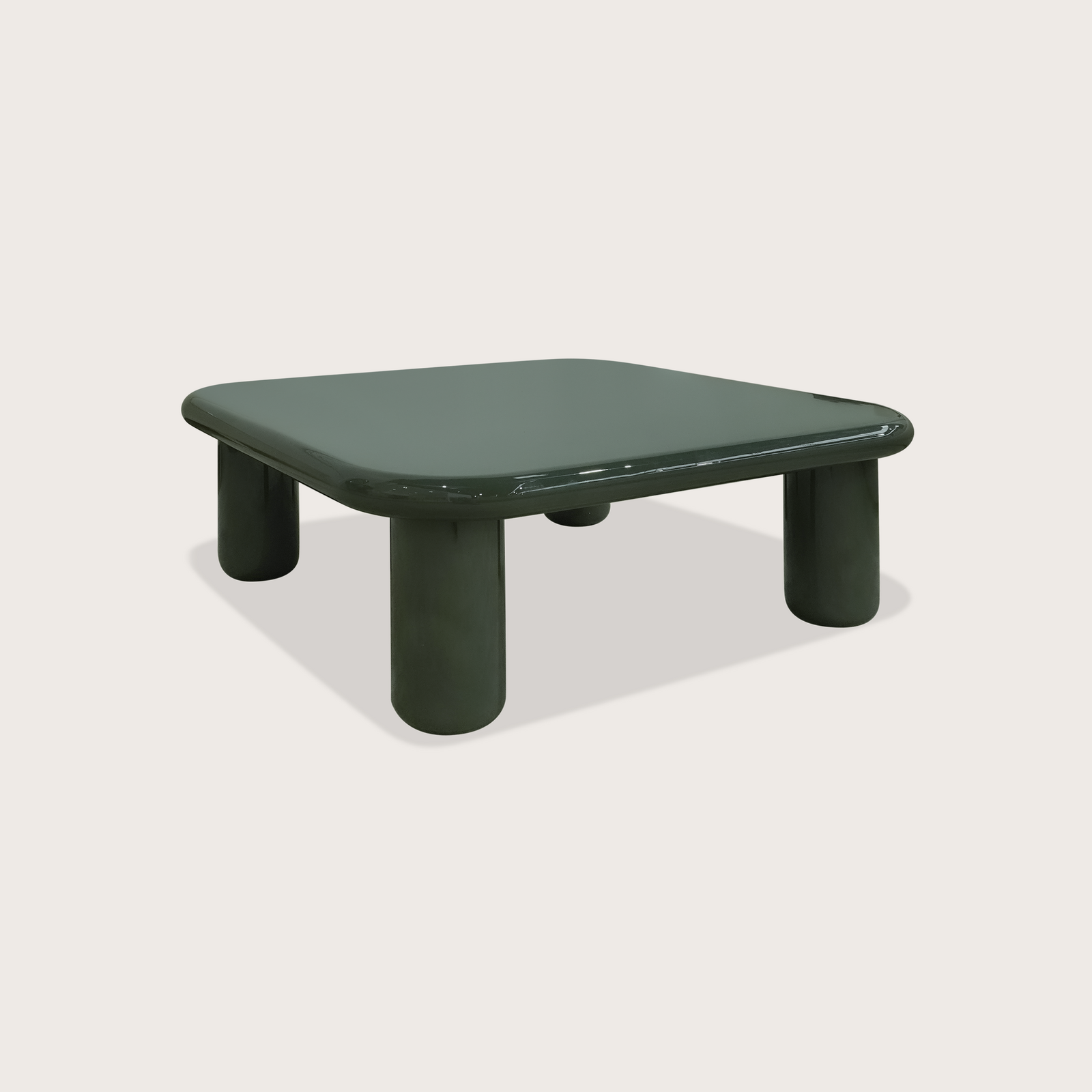 Make a bold statement with the Olivier Square Coffee Table, finished in a rich olive green gloss poly that adds depth and sophistication to any space. Designed with soft rounded edges and four sculptural pillar legs, this piece brings a modern yet organic feel to your living room.