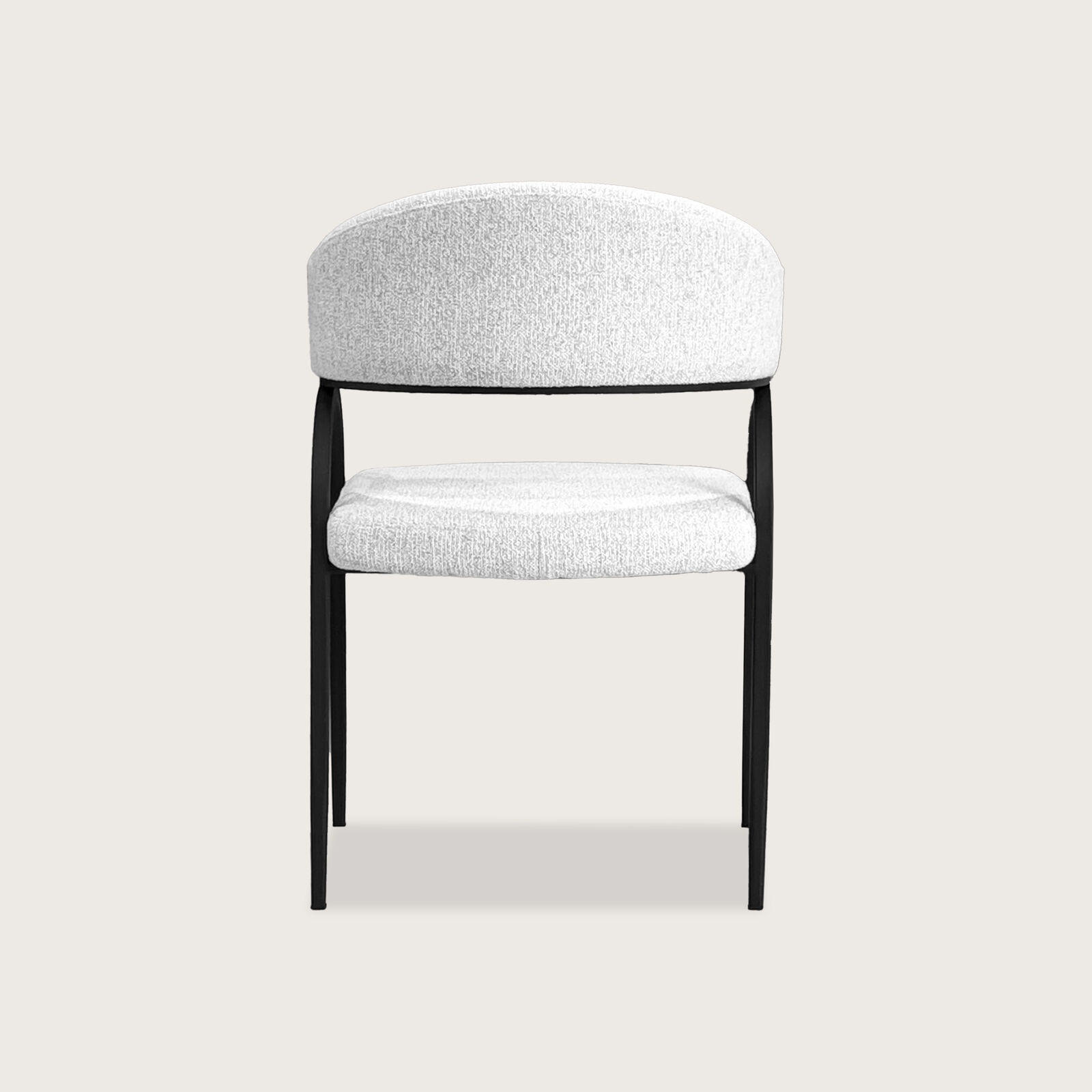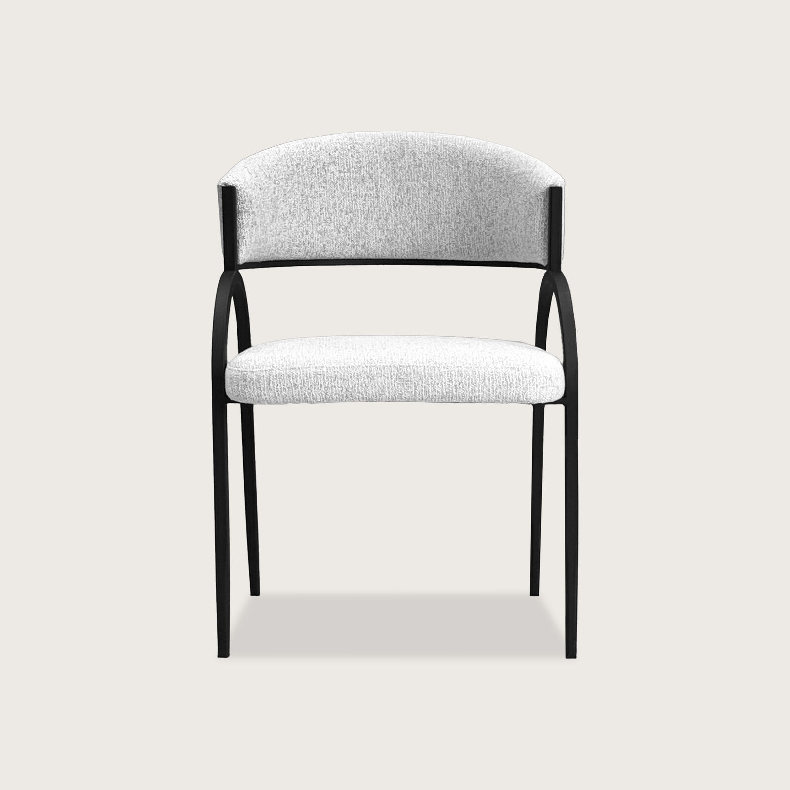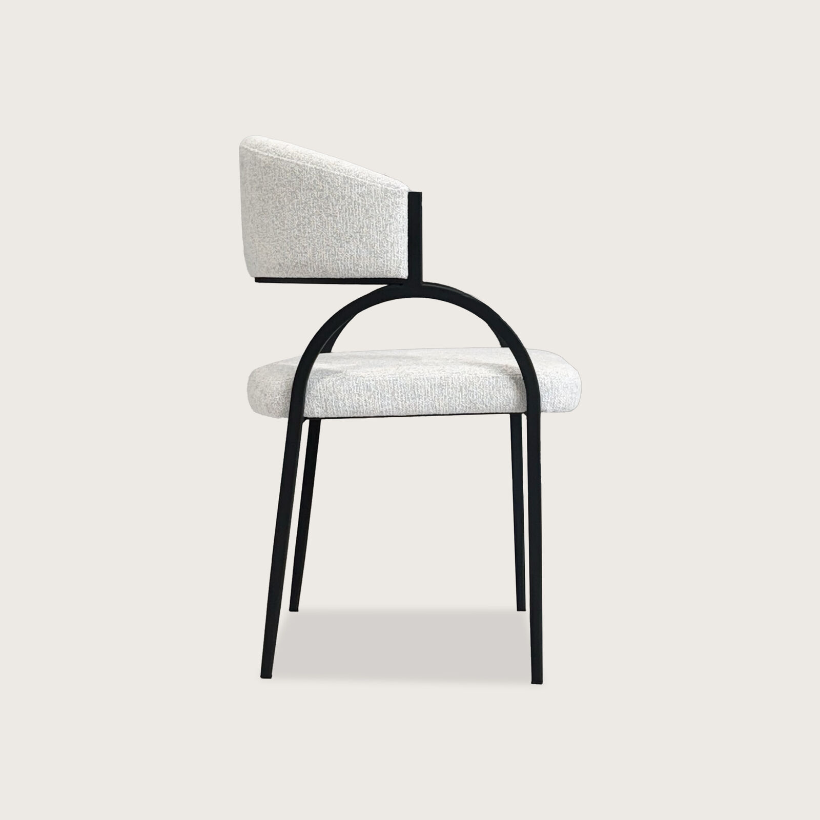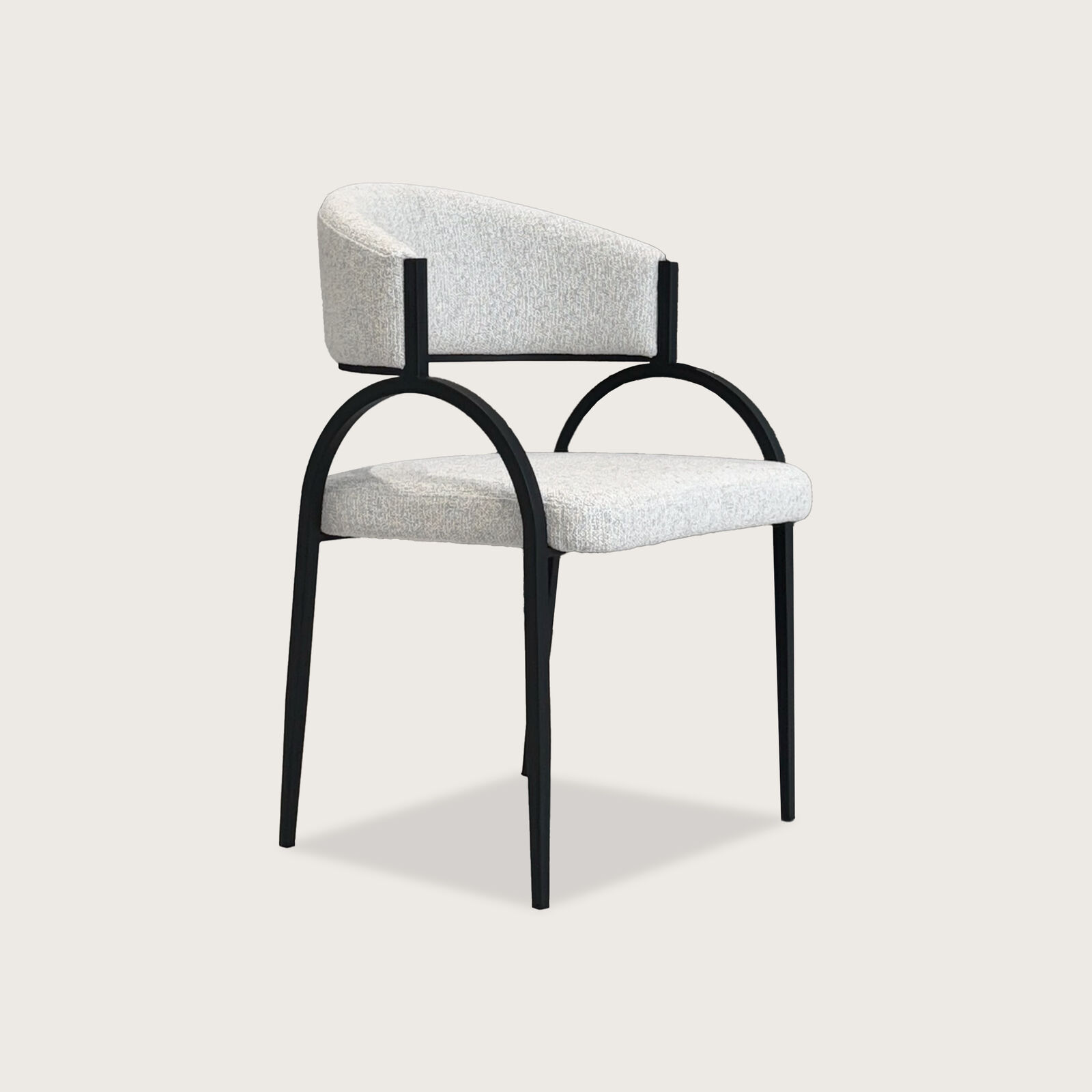 Introducing the Opal Dining Chair, where modern meets timeless sophistication. With its sleek black-coated arched iron frame and curved back, upholstered in chic black and white tweed, this chair is the epitome of style and comfort. Perfect for any space, from kitchens to bars, the Opal Chair adds a touch of elegance and durability wherever it's placed. Elevate your seating experience with the Opal Chair.